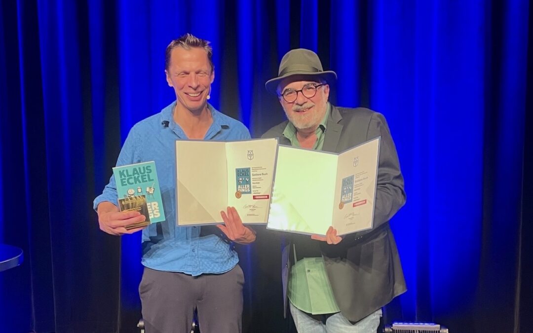 Über 17.000 Exemplare von Klaus Eckels AllerDings wurden insgesamt verkauft, davon über 15.000 in Österreich. Am 27.11. wurde Klaus Eckel dafür von Michael Niavarani und Gustav Soucek der Preis des Goldenen Buches überreicht. Wir freuen uns mit ihm!